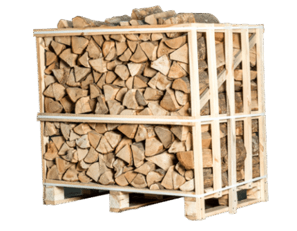 De houtblokken worden in bulk opgeslagen op deze pallet, zodat je ze altijd bij de hand hebt.